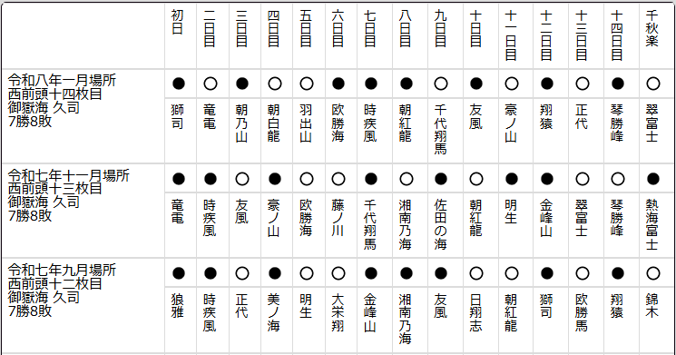 ただいま2025年秋場所からの連続負け越し中
