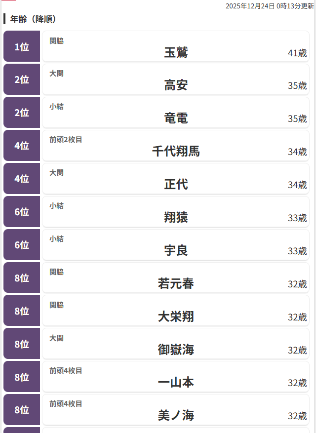 幕内力士の中では、第8位の年齢の様で。既に大ベテランの域かと。